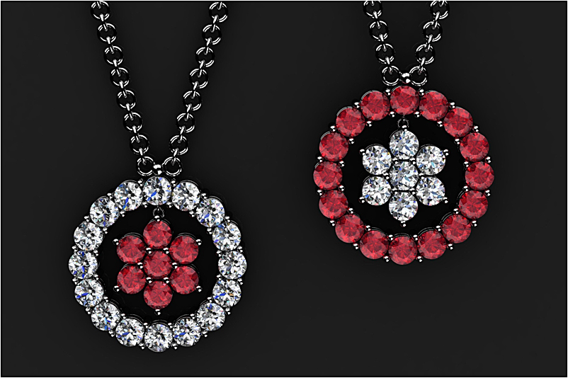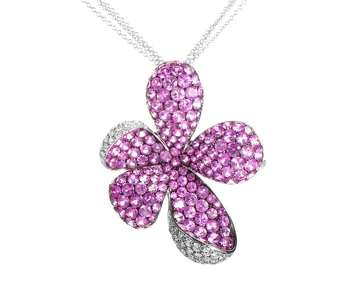 Classic pendant studded with real white and treated pink diamonds complementing each other...