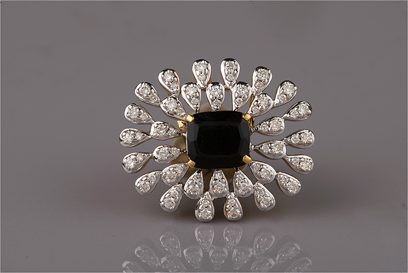 Flowery purple color stones bordered with beautiful white diamonds.
